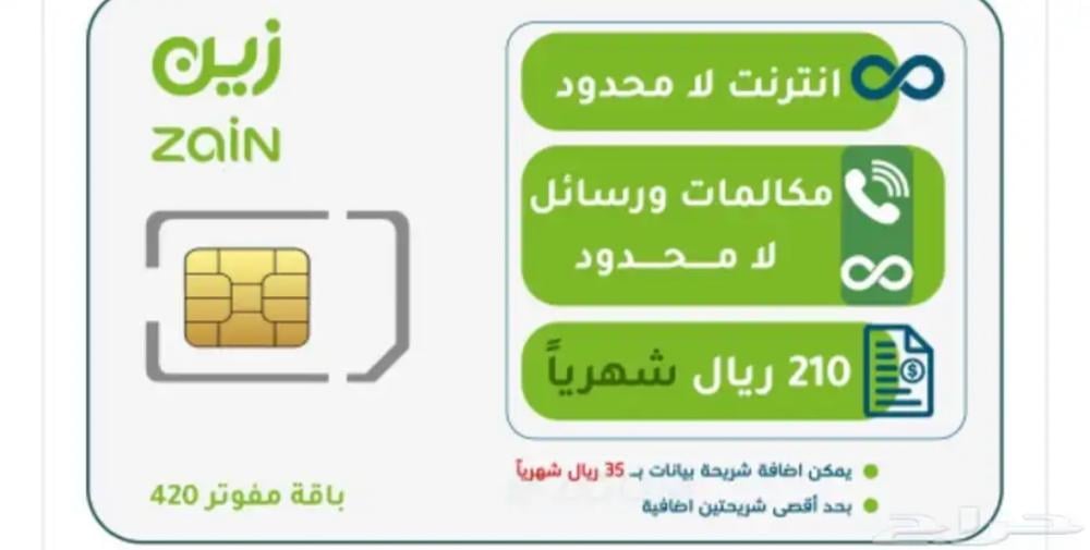شريحة زين باقة مفوتر 420 لا محدود | سداد شهري 210 ريال فقط